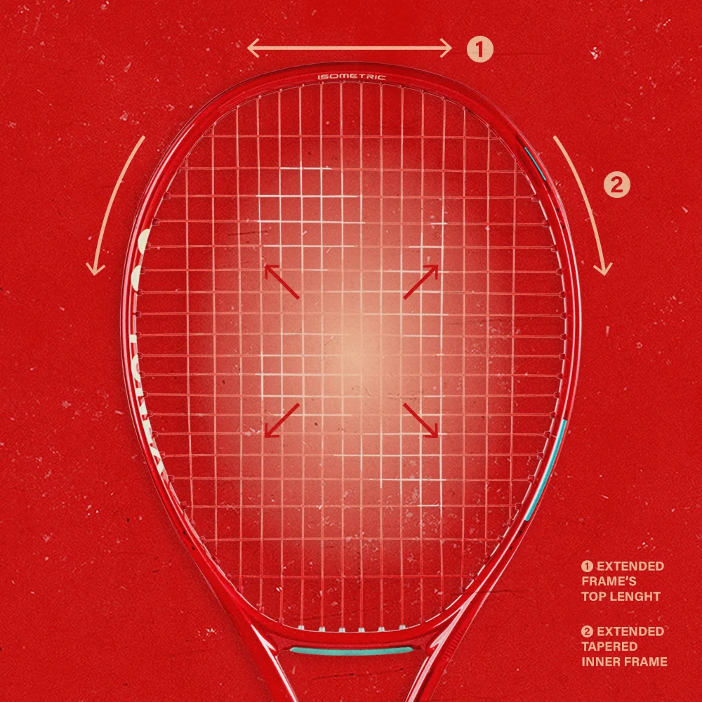 When compared to a conventional round frame, the square-shaped ISOMETRIC racquet possesses a 7% larger sweet spot*. This results in a more forgiving racquet for improved playability.